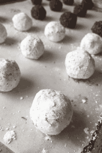 Dust hot cookies with confectioner’s sugar. Cool on rack.