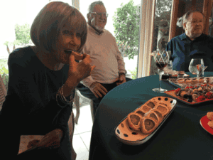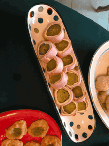 Do you see those round appetizers on the red plate? They’re another unusual and delicious appetizer. Substitute gluten- or low-carb flour for the wheat flour, if that’s what your diet requests.